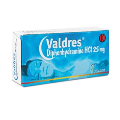 Valdres 25 mg Tablet mengandung difenhidramin, yang termasuk dalam golongan antihistamin.