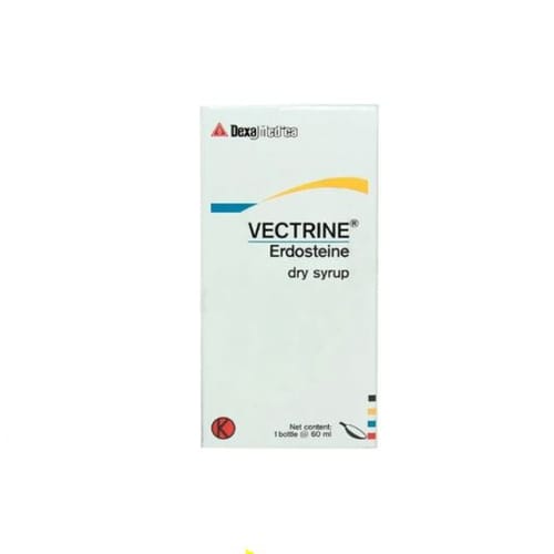 Vectrine Sirup Kering mengandung erdosteine yang bekerja dengan cara mengencerkan dahak yang terdapat di saluran pernapasan. Dengan demikian, dahak dapat lebih mudah dikeluarkan saat batuk.