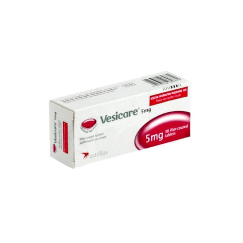 Vesicare 5 mg Tablet mengandung solifenacin succinate yang bekerja dengan cara melemaskan otot-otot di sekitar kandung kemih dan saluran kemih.