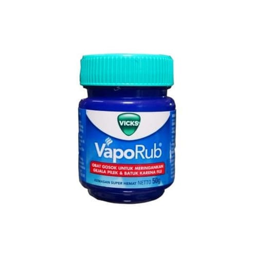 Vicks VapoRub mengandung camphor, menthol, dan eucalyptus oil. Perpaduan bahan tersebut dapat meringankan batuk sementara yang disebabkan oleh iritasi tenggorokan dan paru-paru. Selain itu, Vicks VapoRub juga digunakan untuk mengatasi nyeri otot dan sendi.