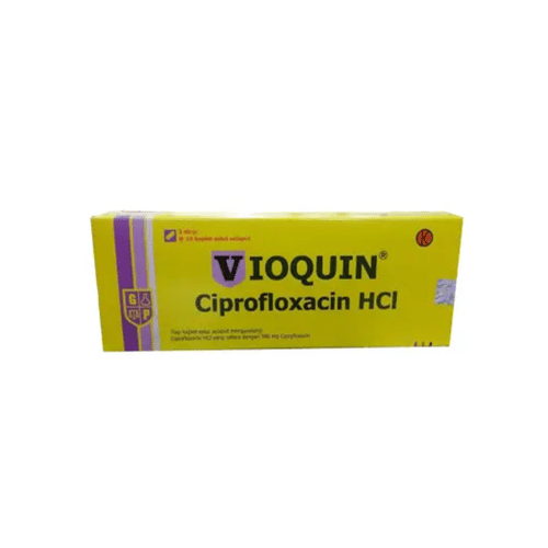Vioquin 500 Mg 10 Tablet Kaplet mengandung ciprofloxacin yang bekerja menghancurkan dinding sel bakteri penyebab infeksi sehingga bakteri tersebut mati.