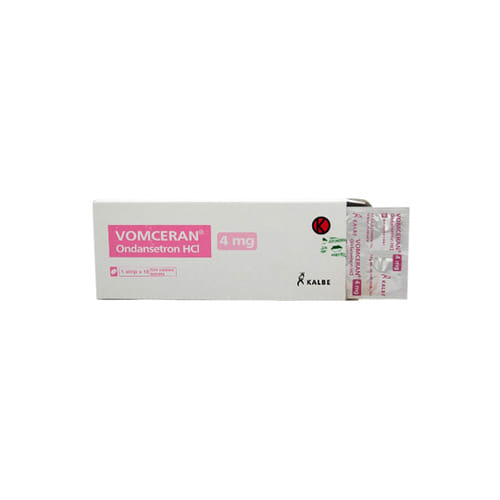 Vomceran 4 mg merupakan obat mual muntah yang diproduksi oleh PT Kalbe Farma dalam bentuk tablet salut selaput dan kemasan ampul. Tablet salut selaput dibuat dalam 2 kekuatan yaitu tablet 4 mg dan tablet 8 mg. Tiap tablet Vomceran 4 mg mengandung Ondansetron 4 mg yang dapat menghambat mual dan muntah pasca operasi, karena agen sitotoksik, maupun radiasi. Vomceran sebaiknya tidak diberikan kepada ibu hamil terutama selama trisemester pertama, kecuali bila manfaat yang didapat melebihi dari risiko yang mungkin terjadi. Vomceran juga didapati pada air susu tikus pada percobaan menggunakan hewan coba, sehingga sebaiknya tidak diberikan pada ibu yang menyusui.