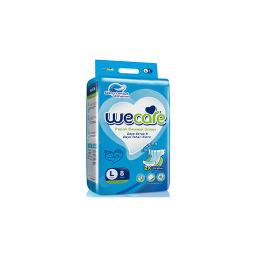 We Care Unisex Adult Diapers L Isi 8 digunakan untuk menampung air seni manula atau pasien dewasa yang tidak bisa menahan keinginan untuk buang air atau kesulitan buang air di kamar kecil