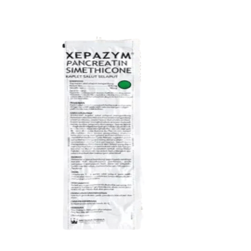 Kandungan pankreatin dalam Xepazym bermanfaat untuk menggantikan enzim pencernaan ketika tubuh tidak memiliki cukup enzim sendiri. Sementara itu, kandungan simethicone bermanfaat untuk mengurangi kembung dengan menguraikan gas dalam saluran pencernaan.