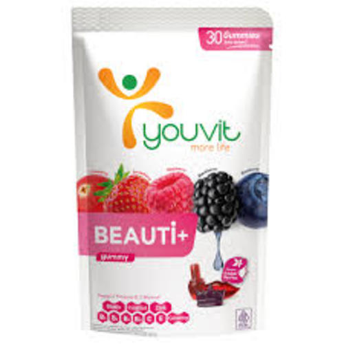 - Youvit Beauti+ dapat dikonsumsi setiap hari. Kunyah gummy hingga hancur sebelum ditelan.