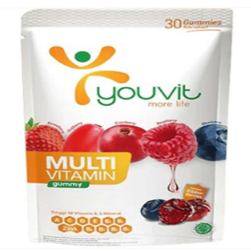 - Youvit Multivitamin Gummy Dewasa dapat dikonsumsi sebelum atau setelah sarapan pagi. Kunyah gummy hingga hancur sebelum ditelan.