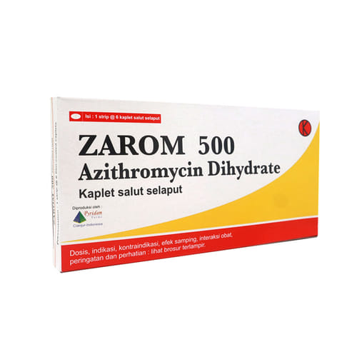 Konsumsi Zarom 500 Mg 6 Tablet sesuai anjuran dokter dan selalu baca petunjuk penggunaan yang tertera pada kemasan obat. Jangan mengurangi atau menambah dosis tanpa berkonsultasi dulu dengan dokter.