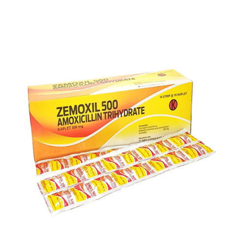 ZEMOXIL 500MG KAPSUL mengandung zat aktif amoxicillin yang merupakan antibiotik golongan penicillin, mempunyai spektrum sedang, aktif terhadap bakteri gram negatif maupun gram positif. ZEMOXIL 500MG KAPSUL digunakan untuk mengobati infeksi saluran pernafasan bagian atas dan bawah, infeksi saluran kemih, infeksi saluran pencernaan, serta infeksi kulit dan jaringan lunak.