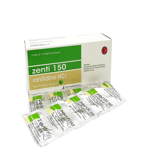 Zenti 150 Mg 10 Tablet bekerja dengan cara menghambat sekresi asam lambung berlebih.