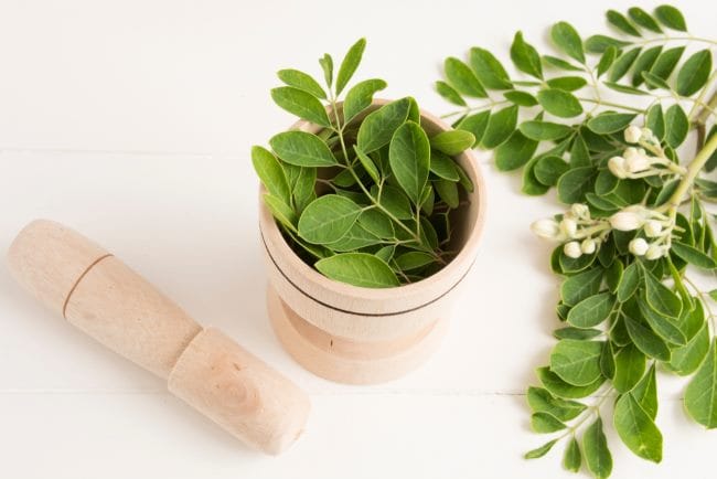 - Haluskan daun kelor yang sudah kering sampai berbentuk bubuk halus.