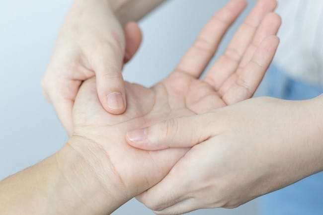Sendi ini merupakan sendi pelana yang ada di pangkal ibu jari. Sendi trapeziometacarpal menghubungkan tulang trapezium atau tulang telapak tangan dan tulang metakarpal atau tulang jari tangan.