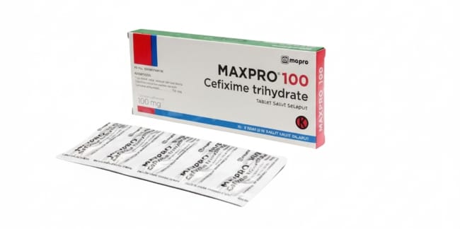 - Maxpro 100 mg 10 Tablet, dengan kandungan 100 mg cefixime per tabletnya