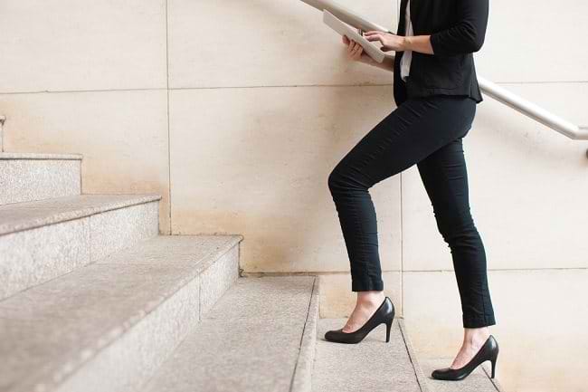 Ketika mengenakan sepatu hak tinggi, beban tubuh akan bergeser ke arah depan sehingga sendi panggul, lutut, dan kaki bagian depan harus menumpu beban tubuh lebih besar.