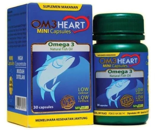 Om3Heart Omega 3 merupakan suplemen makanan dan omega-3 yang mengandung minyak ikan. Kandungan ini berguna untuk membantu menjaga kesehatan jantung, menurunkan kadar trigliserida, dan menunjang fungsi otak. Kandungan asam lemak omega-3-nya sudah disesuaikan dengan kebutuhan harian dewasa.