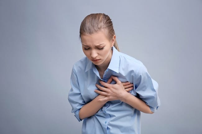 - Jantung, yang ditandai dengan sesak napas, mual, pusing, keringat dingin, nyeri dada, rasa tertekan di dada, dan tidak enak badan