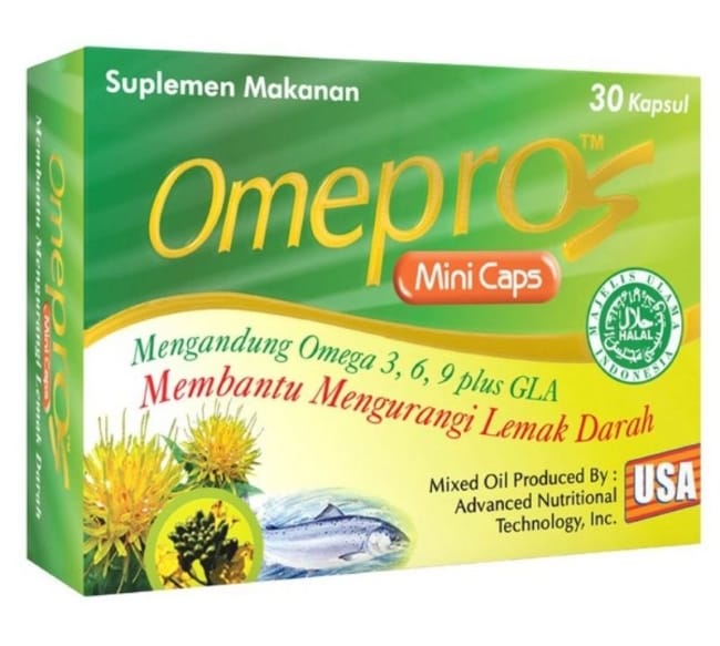 Vitamin untuk badan pegal yang berikutnya bisa jadi pilihan Anda adalah Omepros. Vitamin ini mengandung minyak ikan, omega-3 (DHA & EPA), vitamin E, dan minyak nabati.